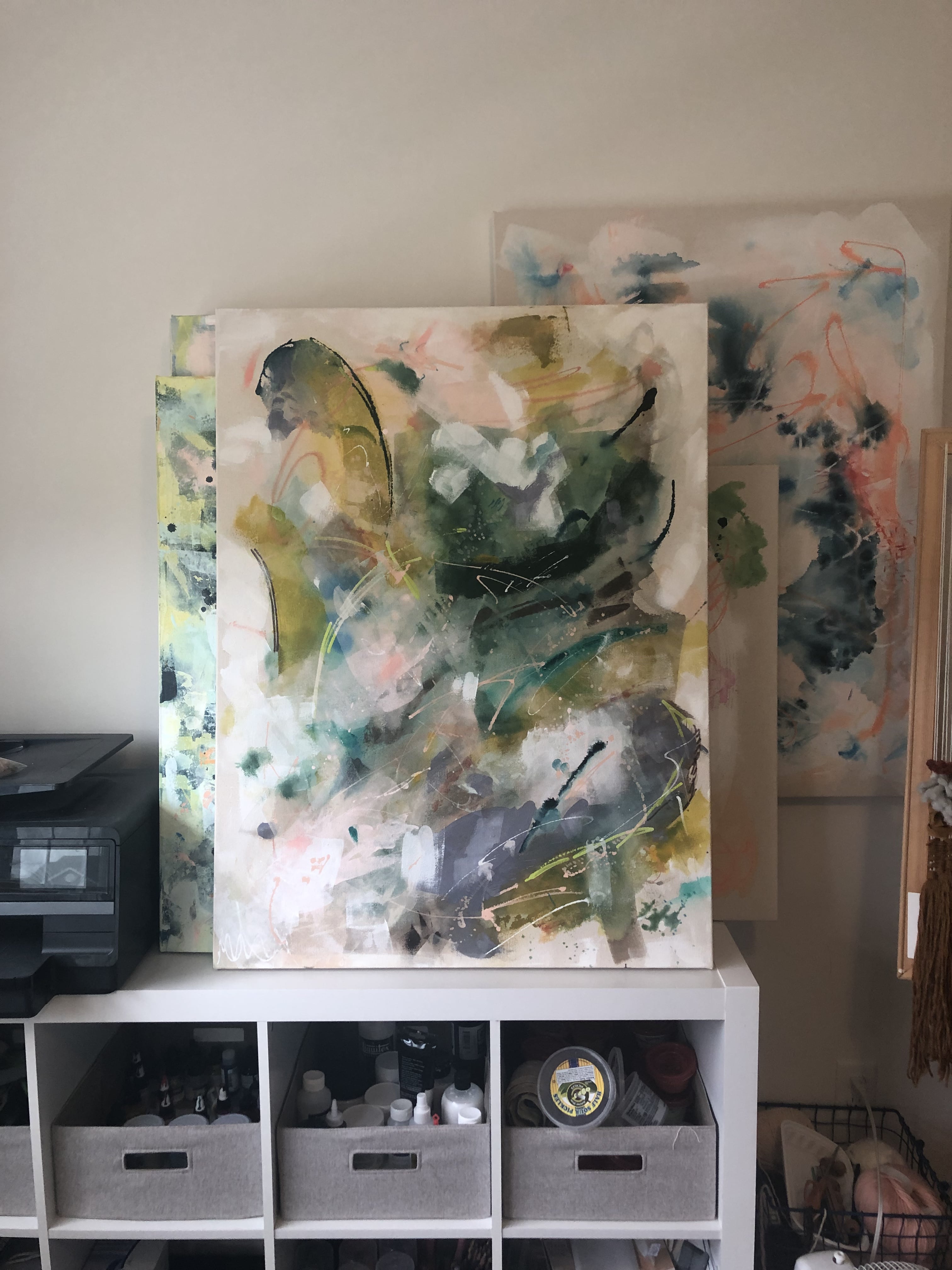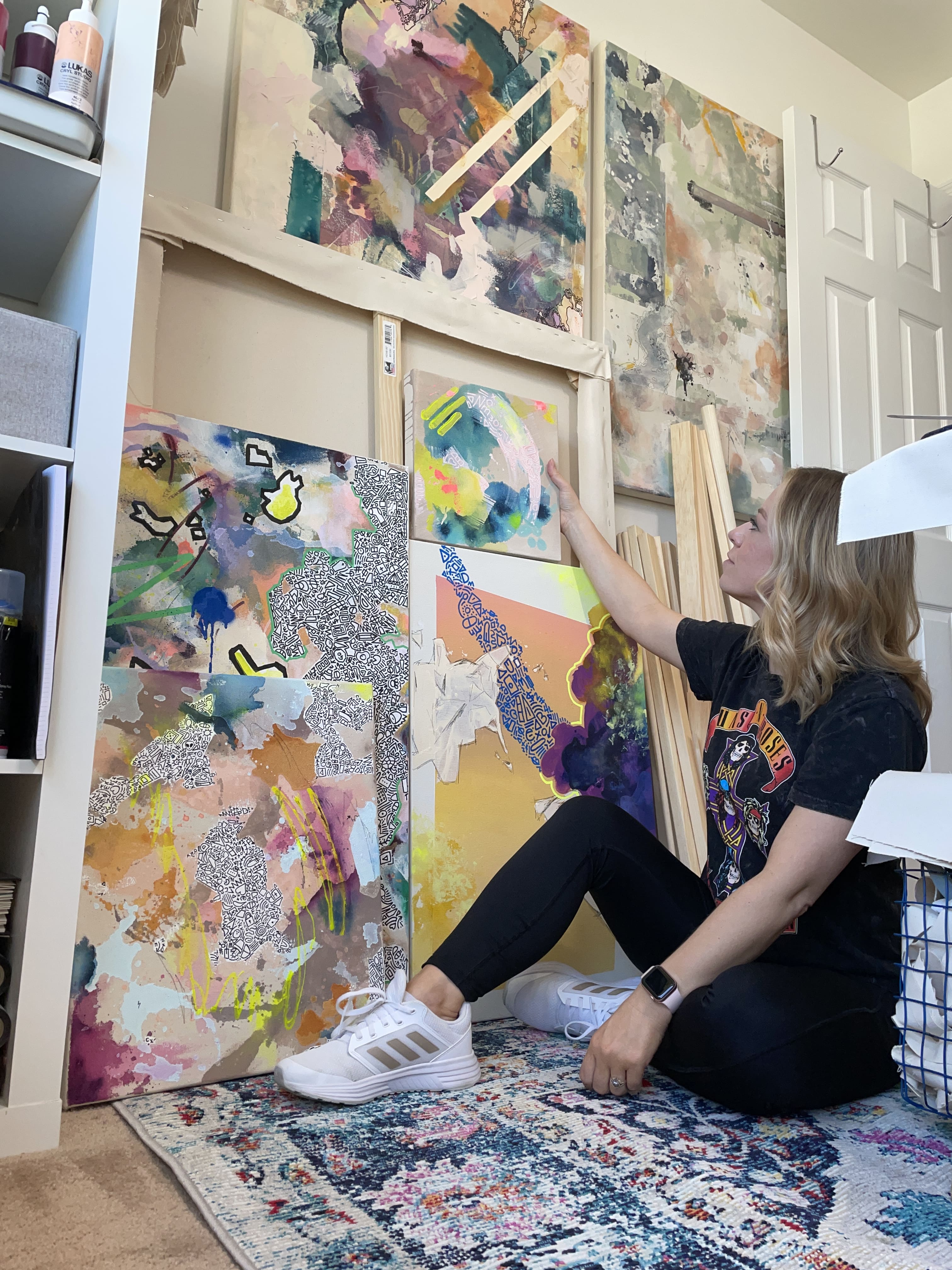 In 2020, I started painting out of boredom during the pandemic. I’ve always loved creating with my hands, but discovering abstract artists on Instagram and Pinterest made me pick up a paintbrush. My first paintings were experiments—messy, muddy, and full of trial and error—but I loved every minute of it. Acrylic paint’s fast drying time gave me the instant gratification I was craving.